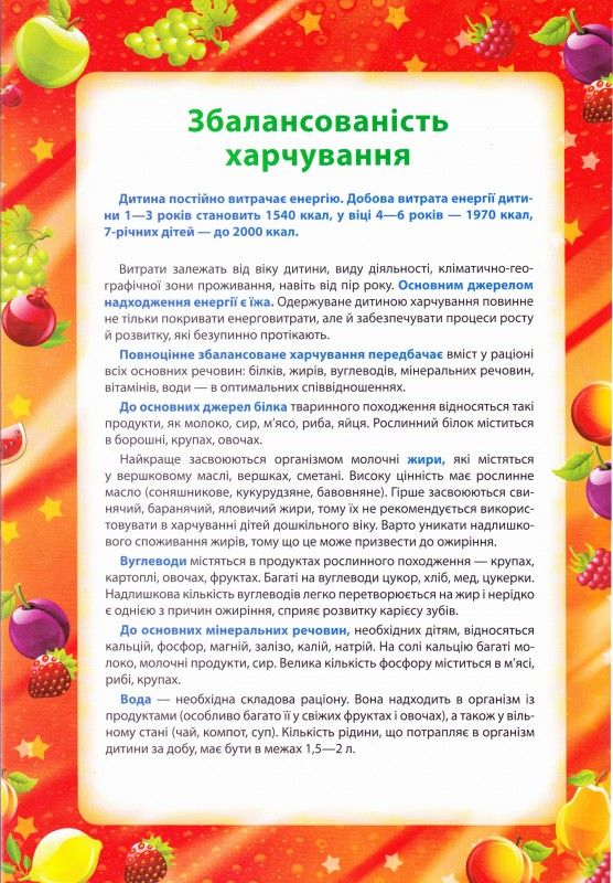 Залежно від віку діти повинні щодня одержувати певну кількість енергії, живильних, мінеральних речовин і вітамінів.